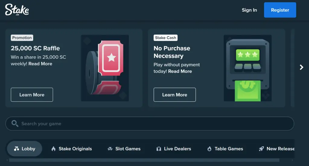 After clicking “Play Now”, you’ll be taken to the Stake.us homepage.